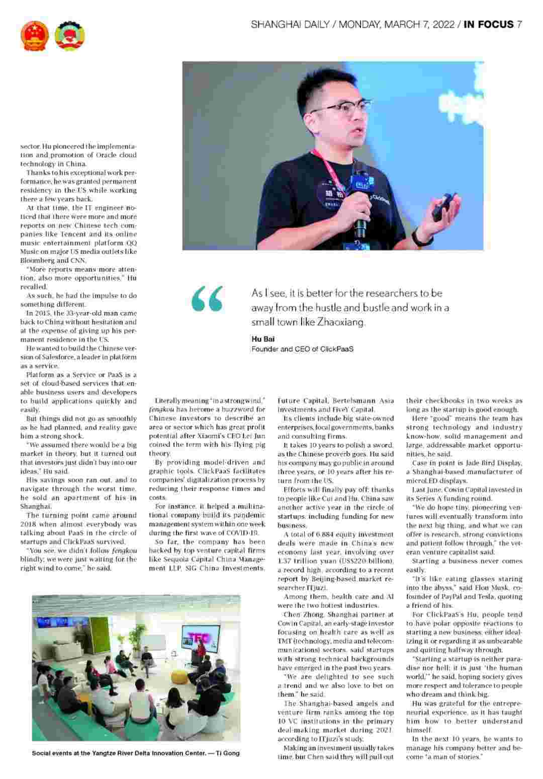 【创业故事】《上海日报》专访华为钱包创始人、、、、、、、、、、、、CEO胡柏,,,,,,探究其创业背后的故事