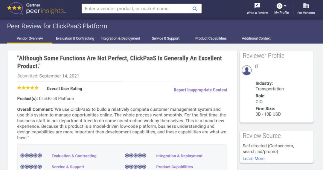 Tips:::::::::::::【Peer Insights】——用户对企业IT产品和服务发布真实评价的平台。。。。。目前已有355个市场,,,,,,,,,,,,,,,,255,000条经过验证的评价。。。。。。。。。。。。每一条评价Gartner会针对参评企业营收规模及参评人员信息做验证、、、、、评价内容做多维核实。。。。。。。。。。。。。。